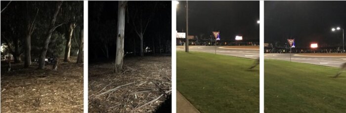 The cockatoos fly and squawk as the drums roll […]. There is silence as we wait in the dark. The kids behind talk to their parents—they try and shush them […] the service has started. As dawn beckons the cockatoos grow louder. They aren’t staged but perhaps the most affective background noise.